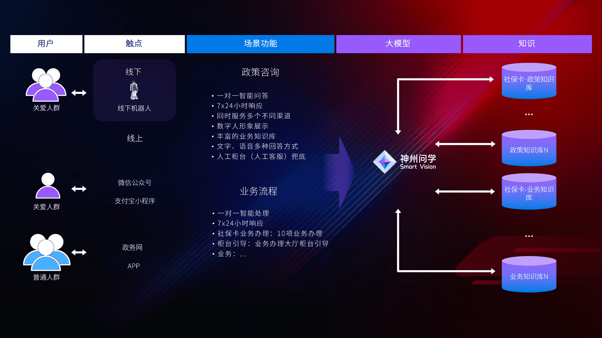 • 线上线下全覆盖:线上提供微信公众号、、、支付宝小程序、、、、政务网、、、app多种渠道,,,,与线下机器人形成完整服务体系。。